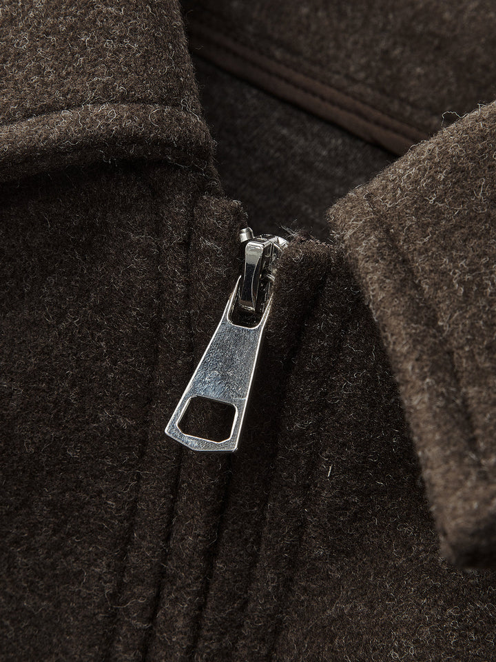 Plain Zipper Tweed Jacket