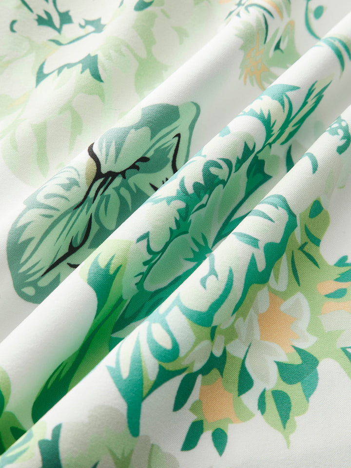 Square Neck Backless Bow Floral Dress