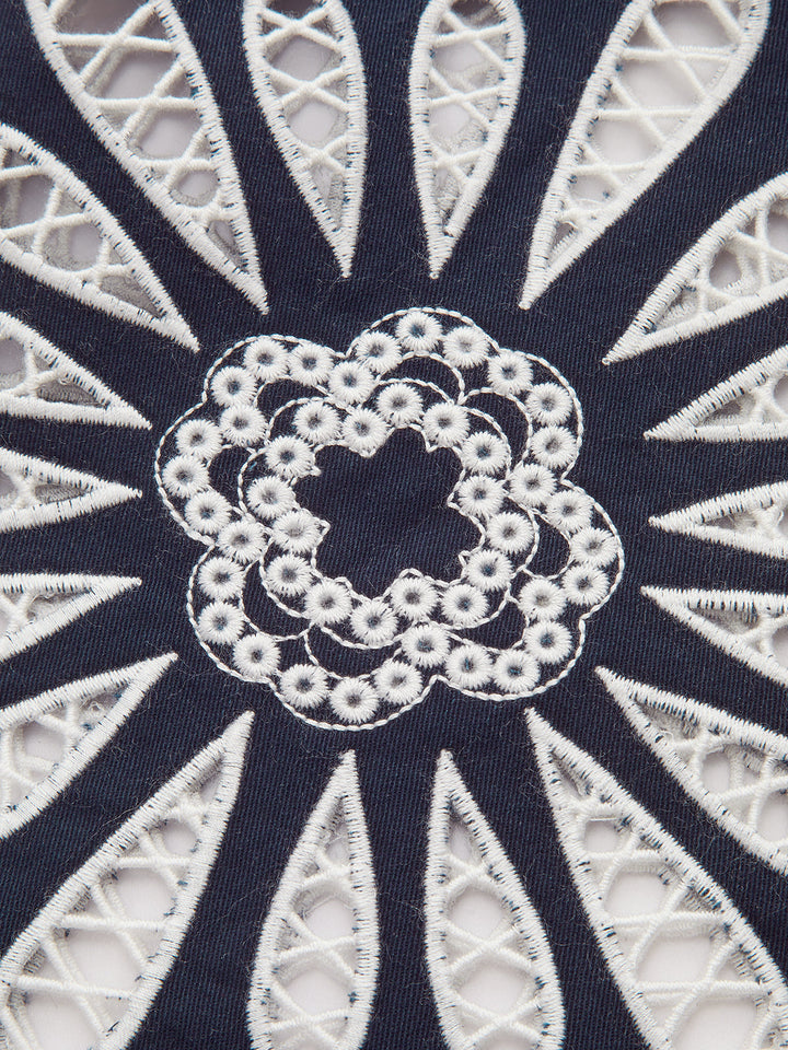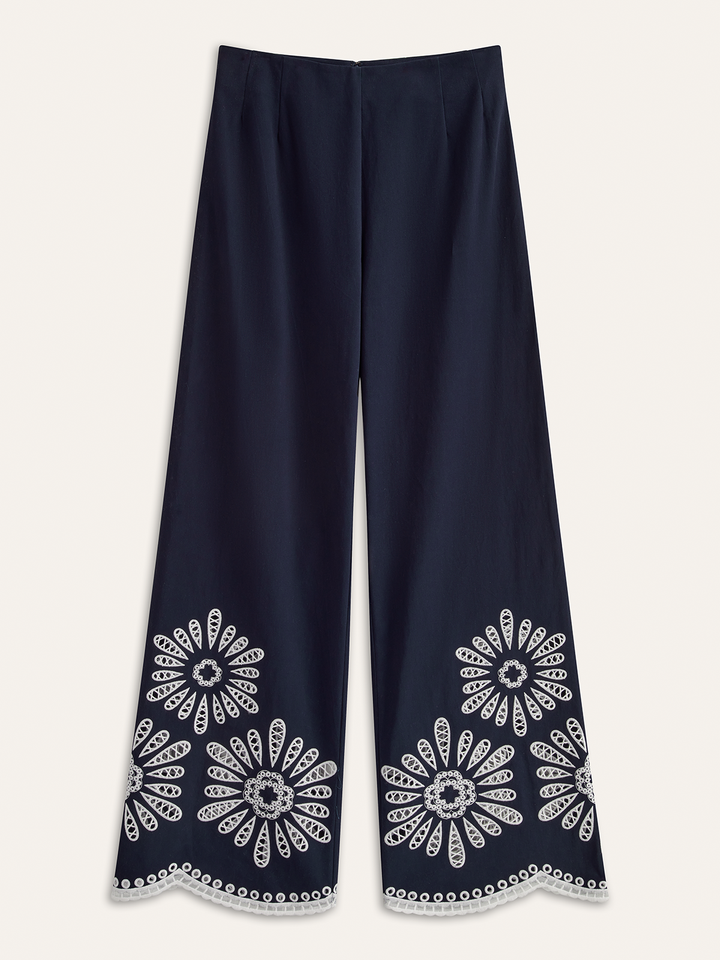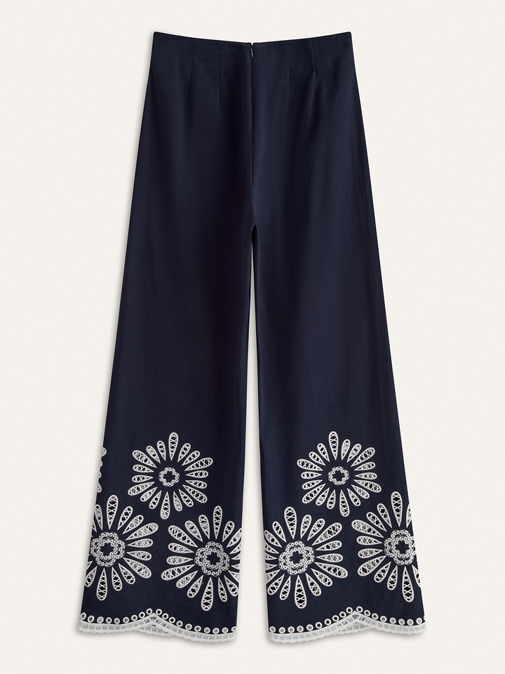 Floral Eyelet Embroidery Cotton Blend Pants