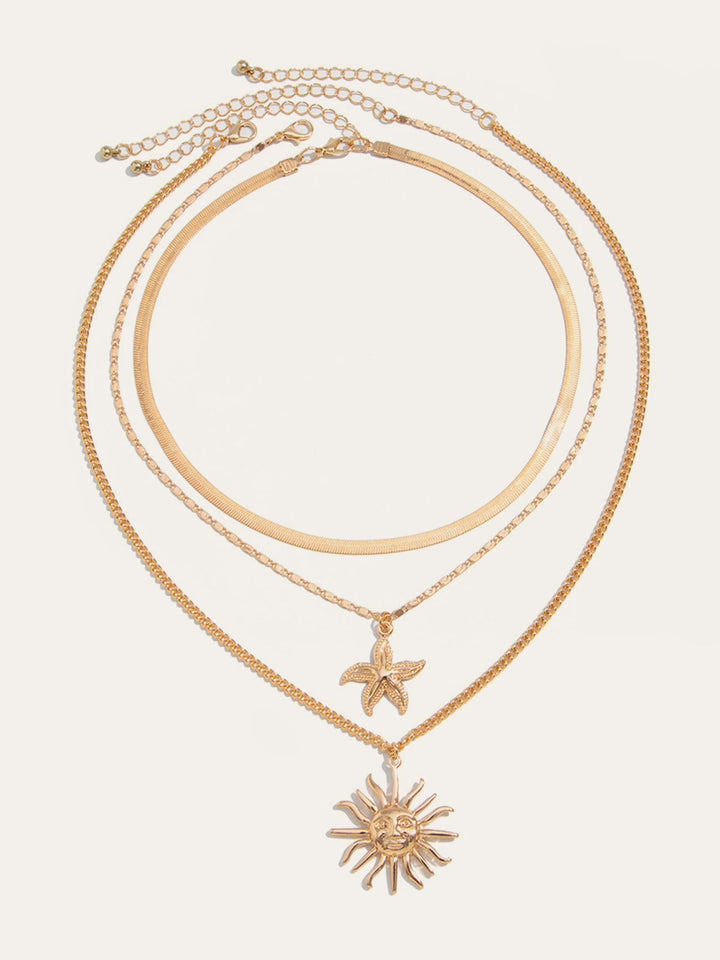 Multi-Layered Gold Sun And Starfish Necklace Set
