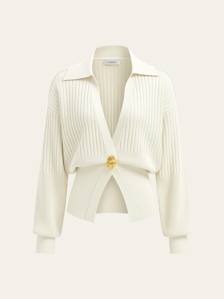 Ribbed Collared Metal Button Cardigan