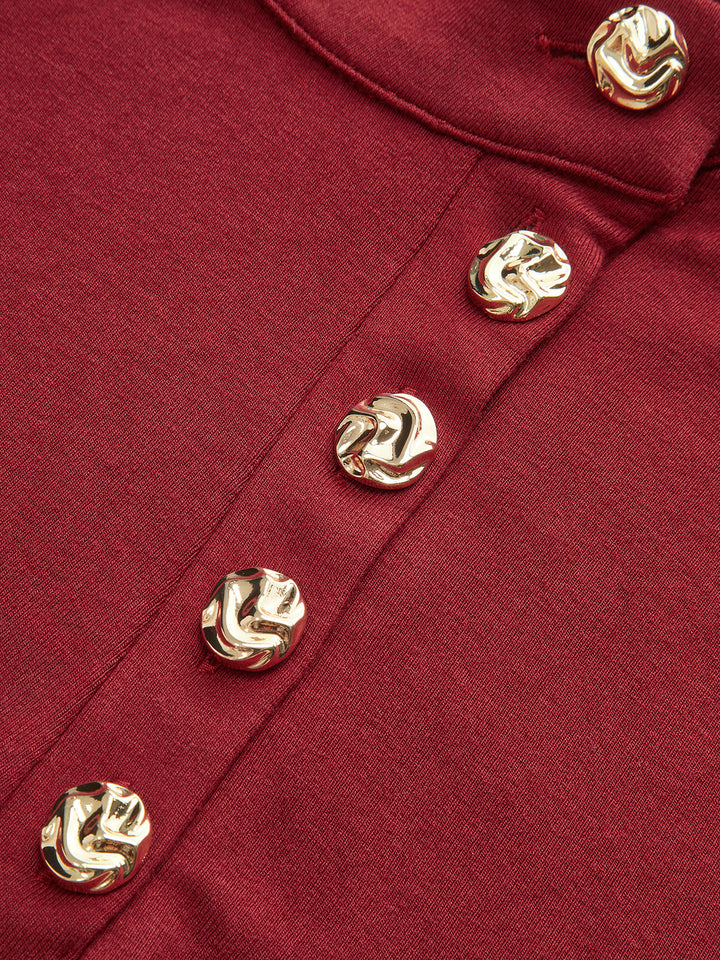 Asymmetric Placket Stand Collar Long Sleeve Blouse