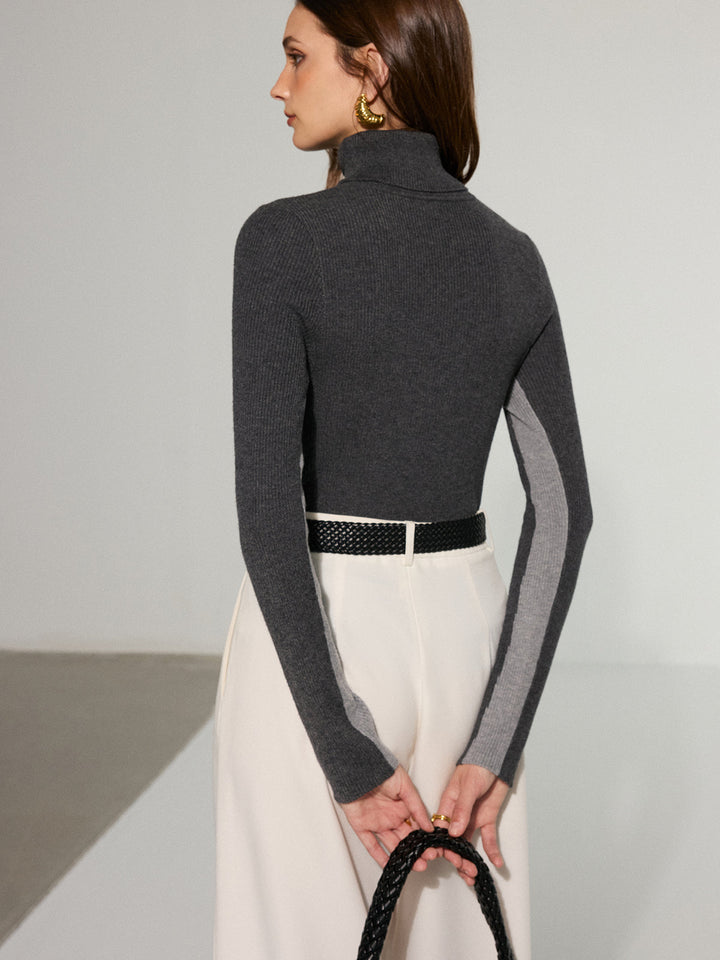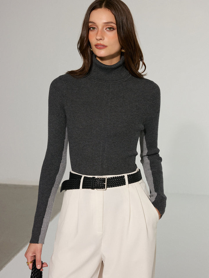 Color-Block Turtleneck Wool Blend Knit Top