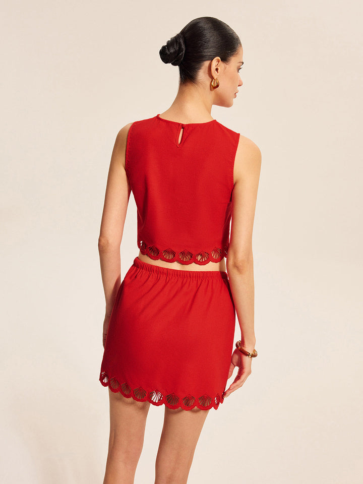 Cotton & Linen Scalloped Trim Skirt Set