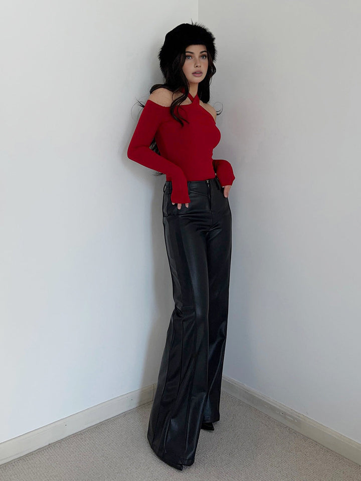 Criss Cross Cold-Shoulder Ribbed Top
