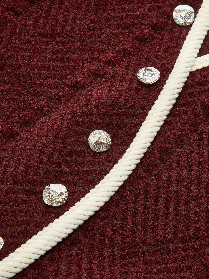 Curved Contrast Trim Chenille Blend Vest