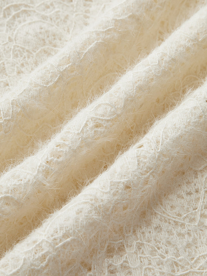 Floral Hollow Knit Crew Neck Long Sleeve Top