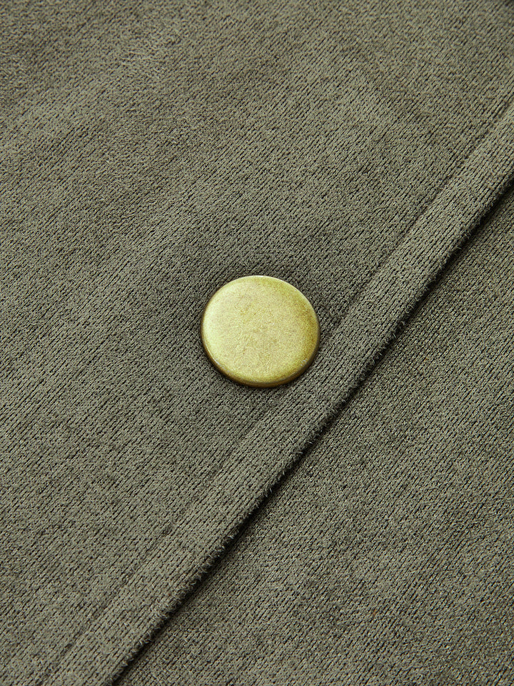 High-Waist Button Front Suede Mini Skirt