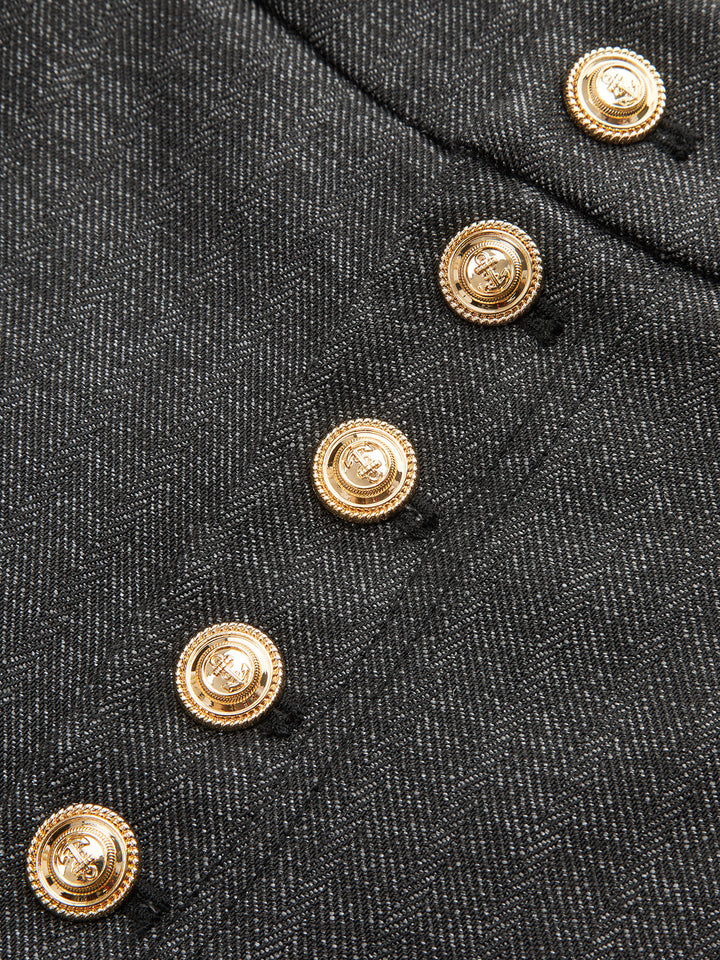 High-Waisted Button-Front Wide-Leg Pants