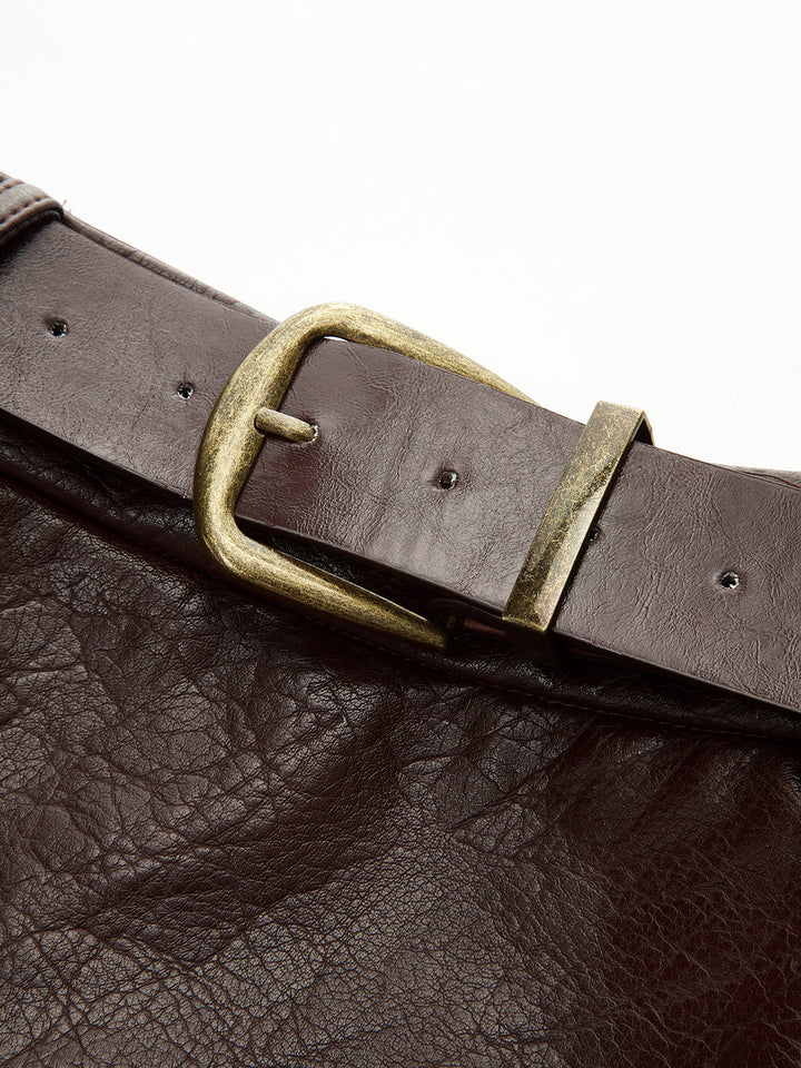 Jacquard Trim PU Leather Mini Skirt with Belt