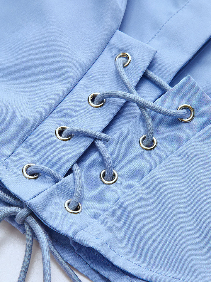 Lace-Up Waist Flare Sleeve Cropped Blouse