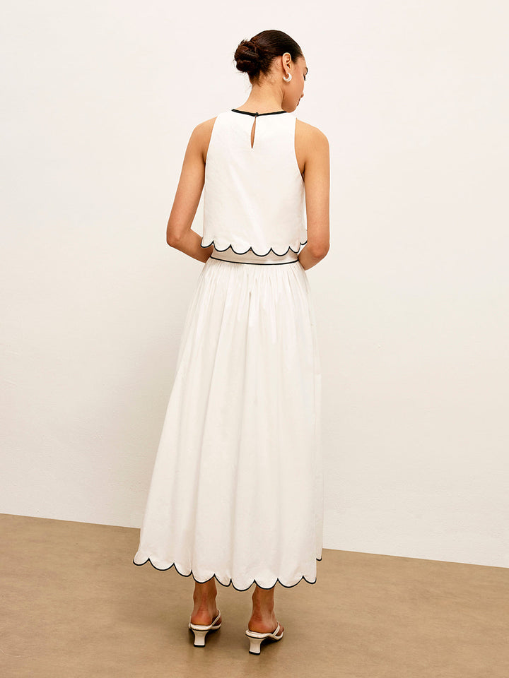 Scallop Trim Color Block Sleeveless Skirt Set