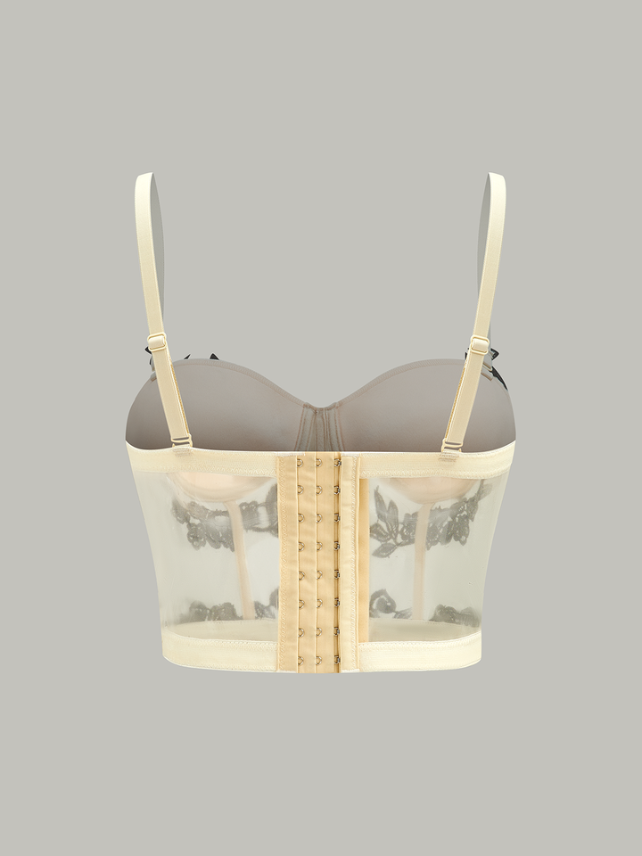 Semi-Sheer Floral Embroidery Mesh Corset Top