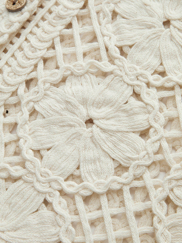 Semi-Sheer Jacquard Cut-Out V-Neck Tank Top