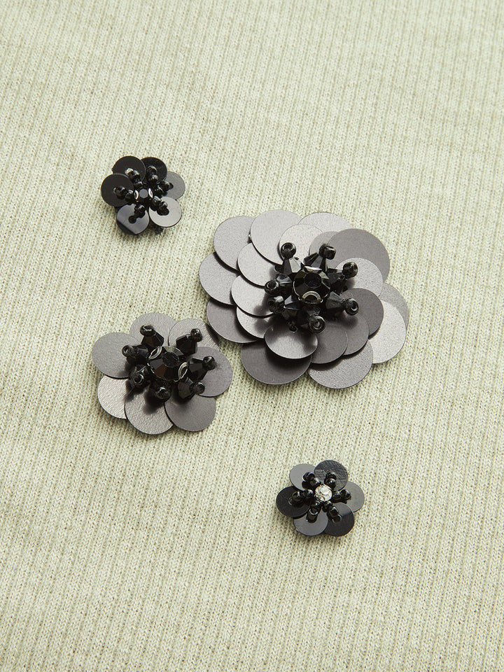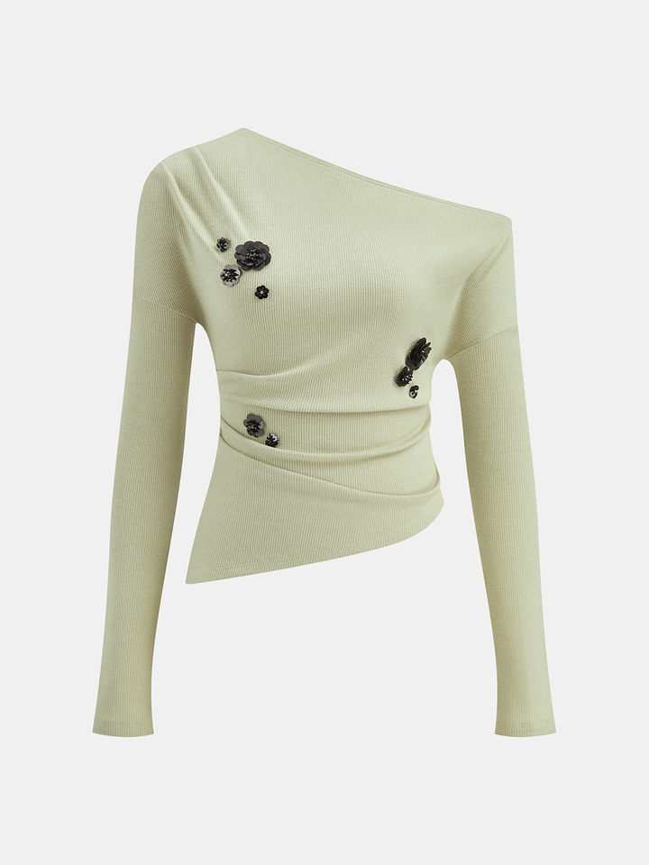 Sequin Flower One-Shoulder Knit Top and Skirt Set
