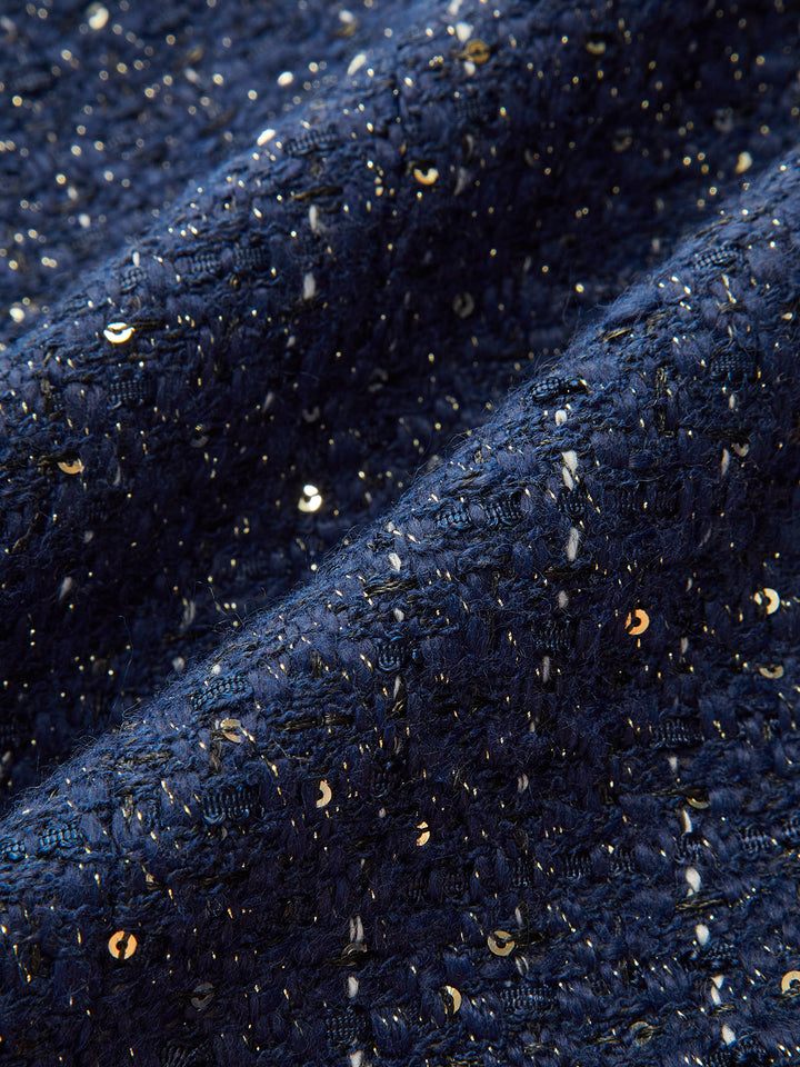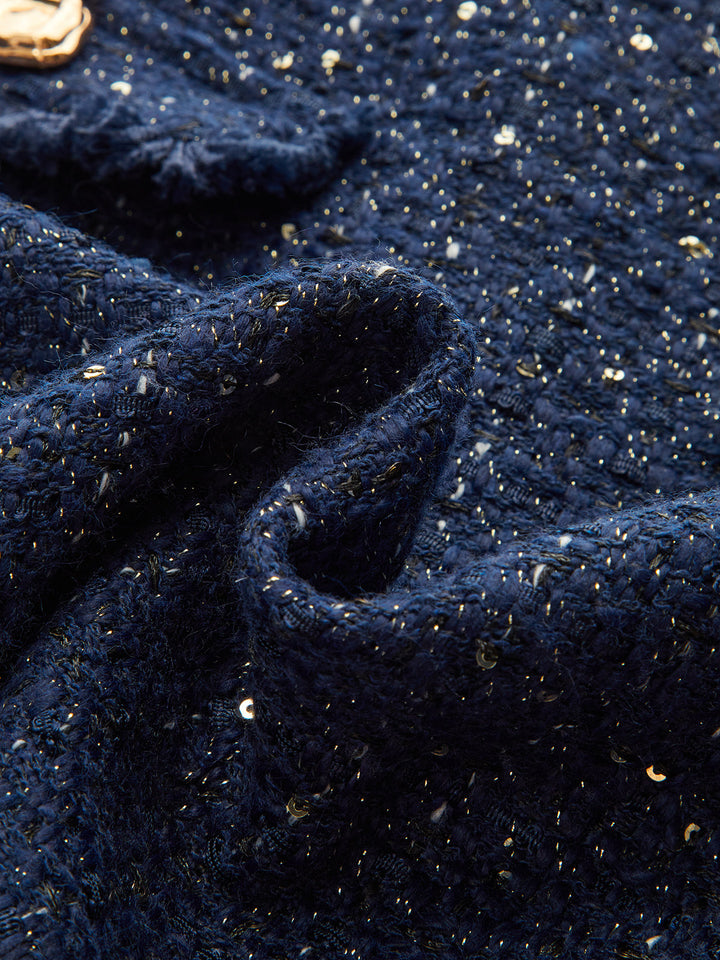 Sequin Tweed Mini Skirt with Decor Pocket
