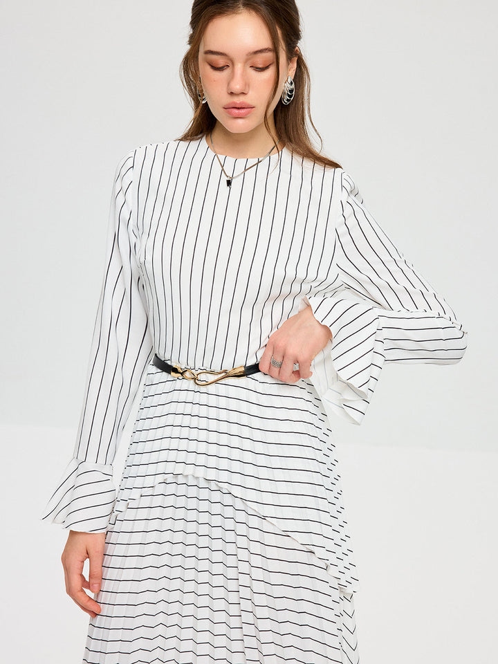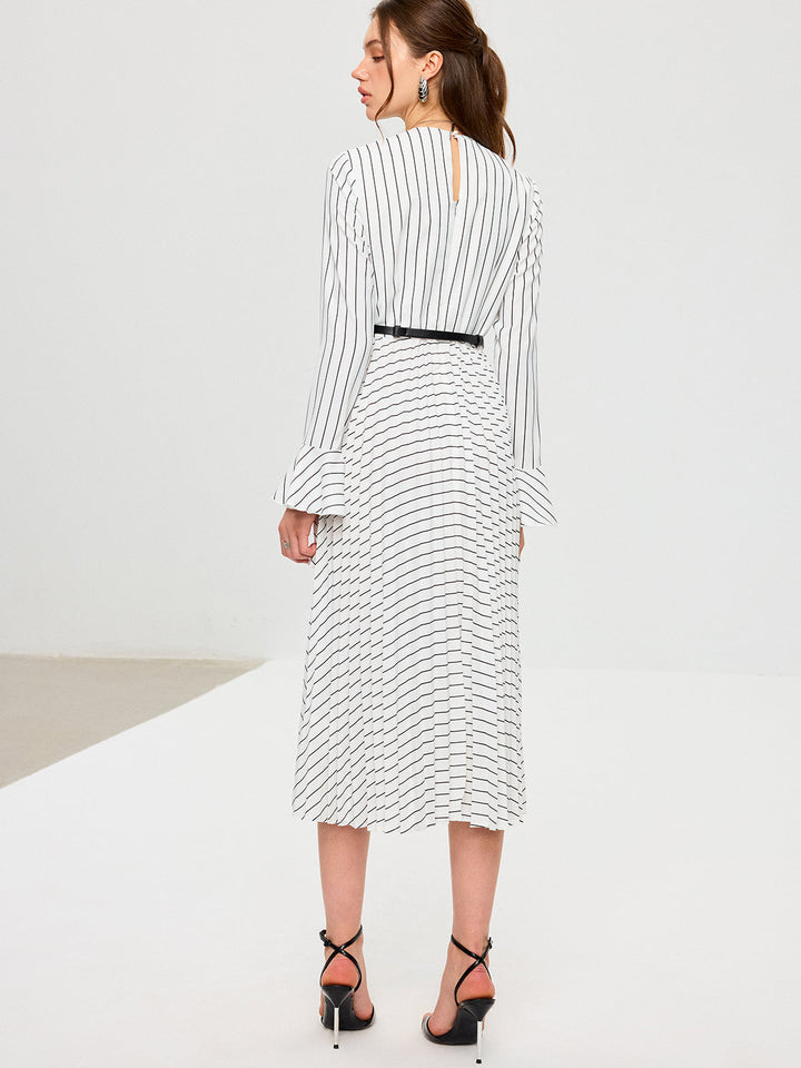 Striped Long Sleeve Belted Midi Dress