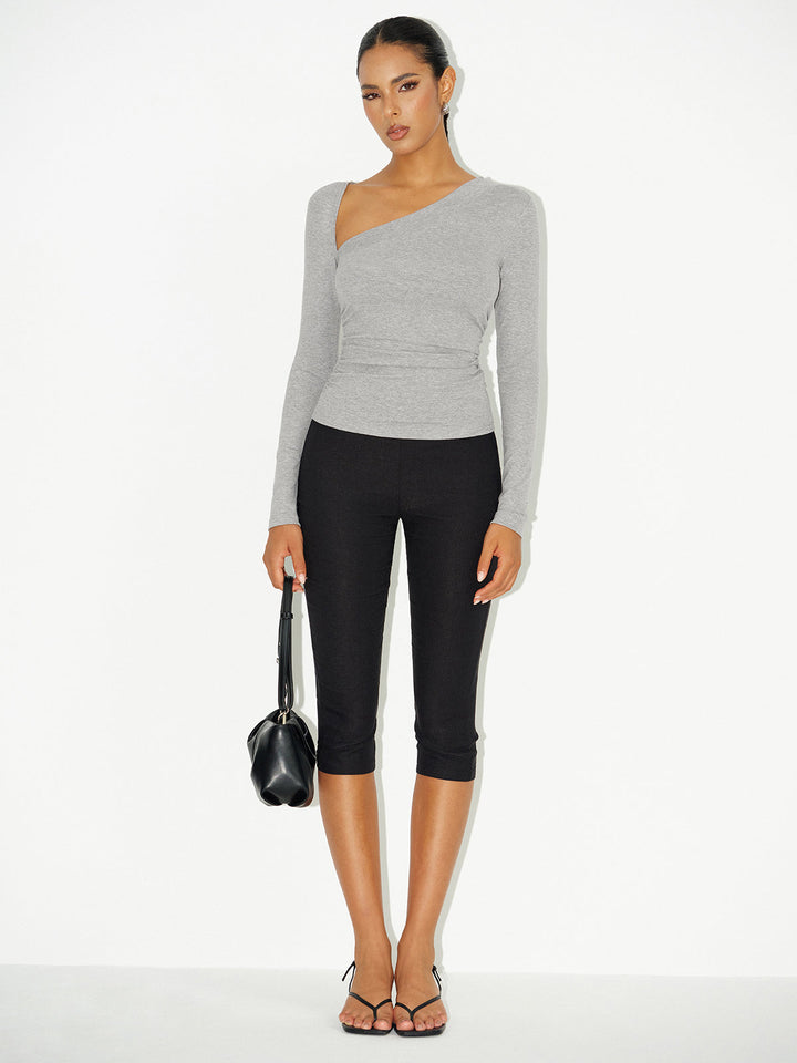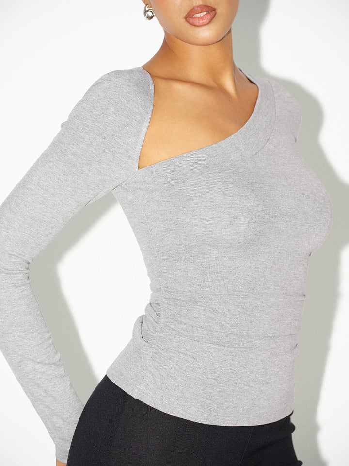 Asymmetric Neckline Ruched Long Sleeve Blouse