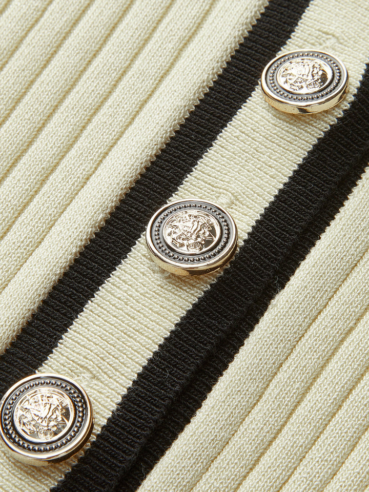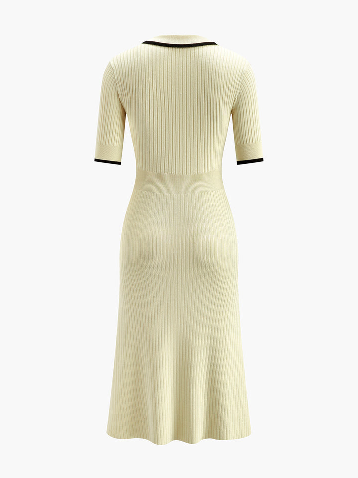 Contrast Trim Collared Rib Knit Short Sleeve Midi Dress