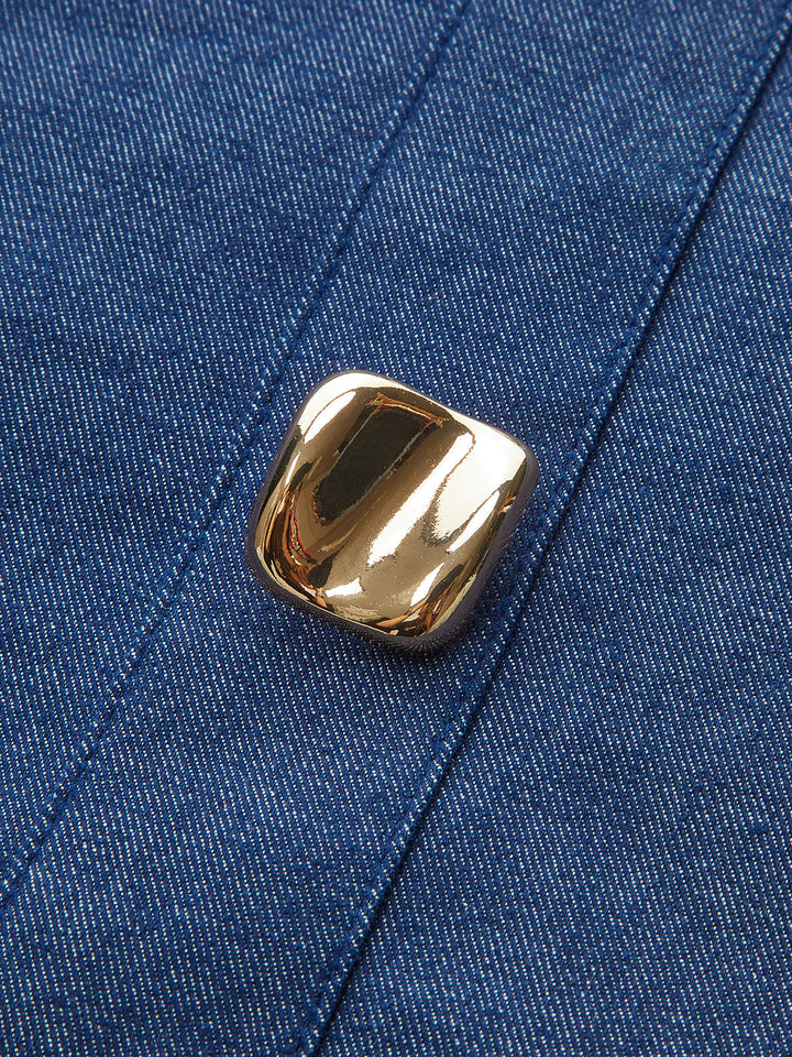 Cotton-Paneled Faux Denim Tank Top