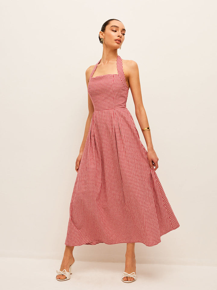 Cotton & Linen Plaid Halter Dress