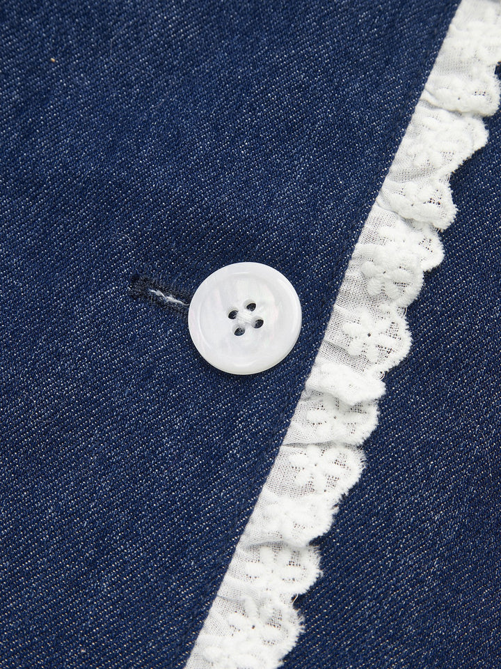 Denim Lace Trim Lapel Mini Dress