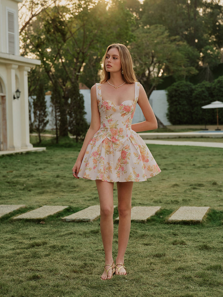 Floral Print Sweetheart Sleeveless Dress