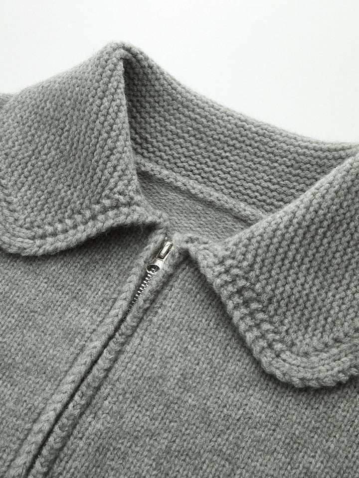 Lapel Zip-Up Knit Cardigan