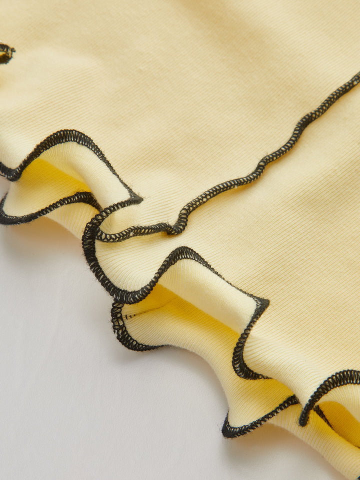 Long Sleeve Contrast Trim Ruffled T-Shirt