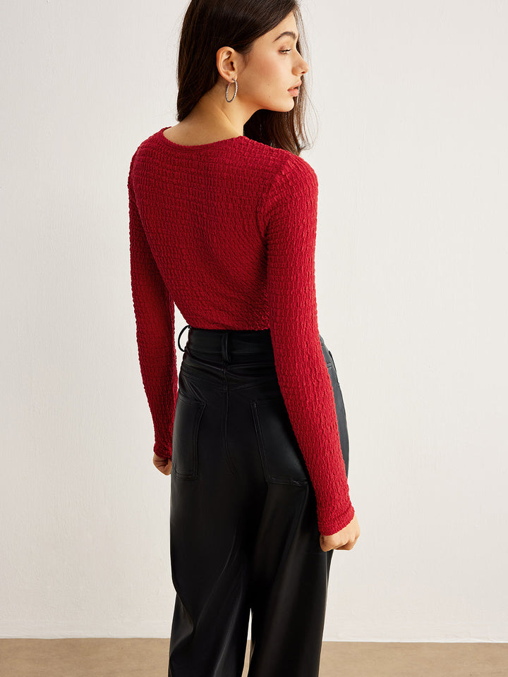 Metal O-Ring Cutout Plisse T-Shirt