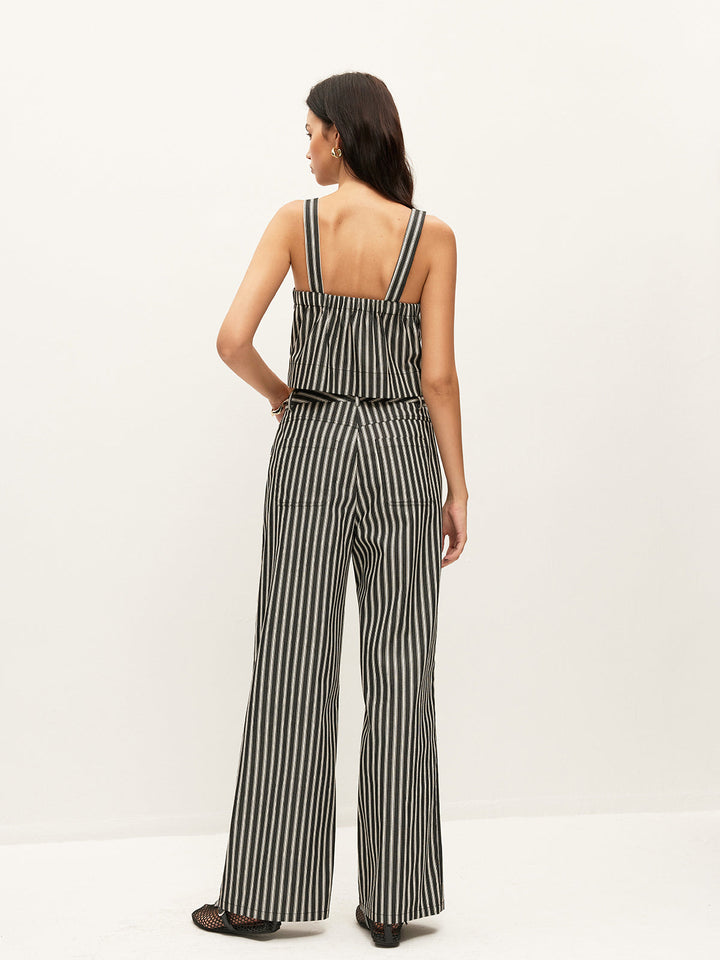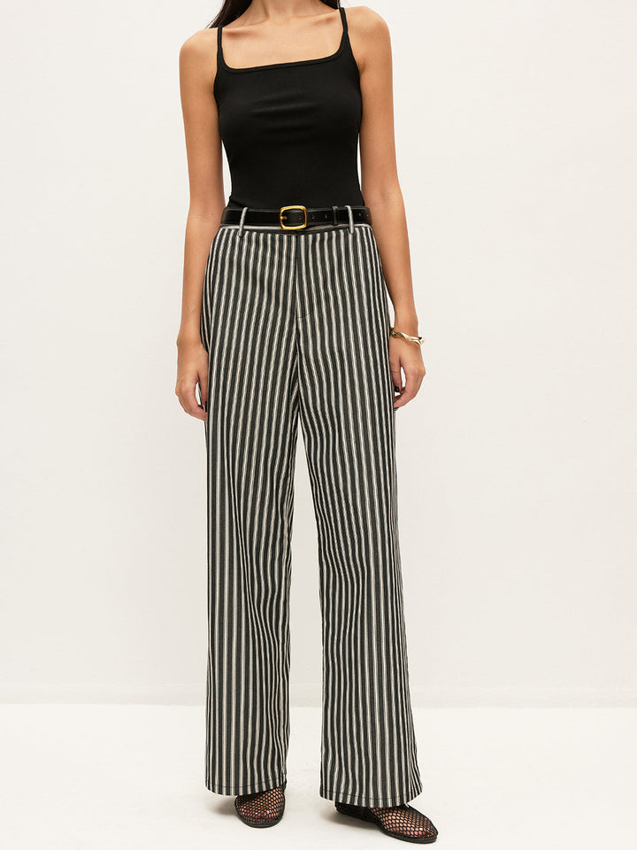 Mid-Waist Striped Pockets Pants Without Belt