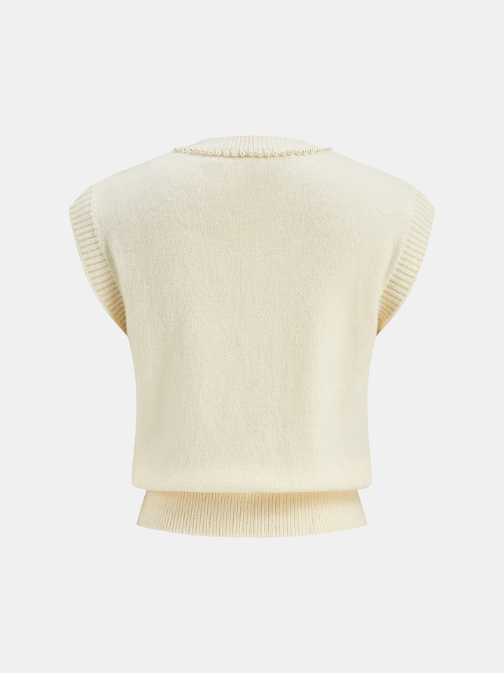 Pearl Bow Detail Cap Sleeve Knit Vest
