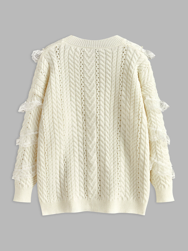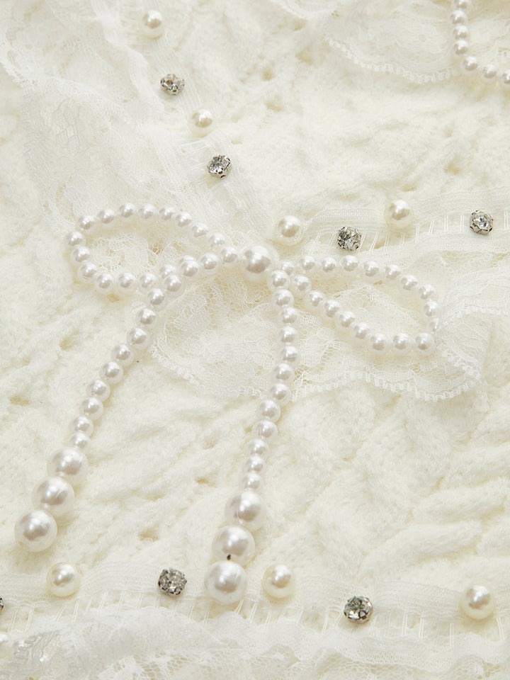 Romance Lace Trim Beaded Sweater