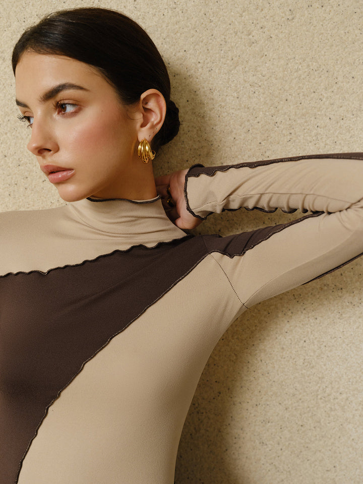 Semi-Sheer Color Block Lettuce Trim Jersey Top