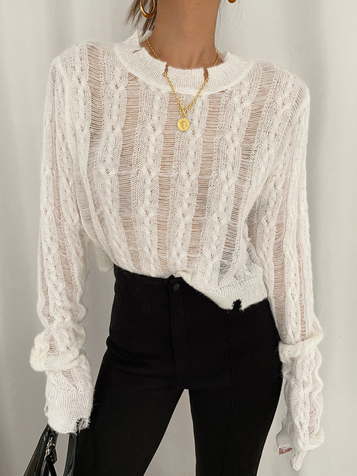 Semi-Sheer Snowflake Crochet Knit Shirt