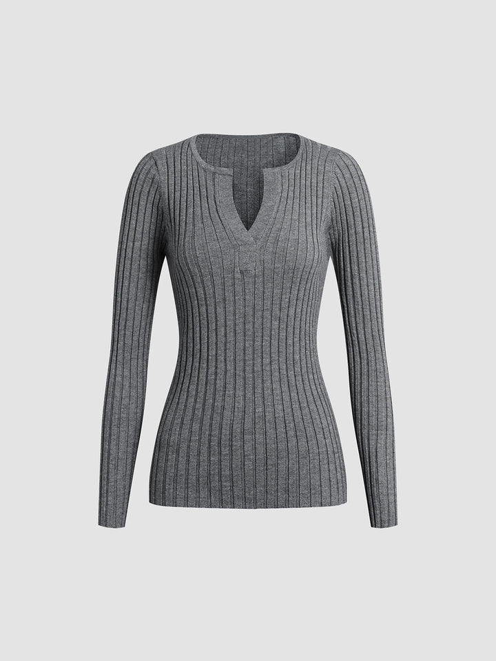 Solid Textured V-neck Knit Top