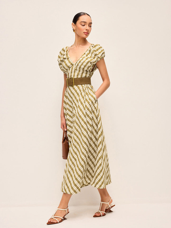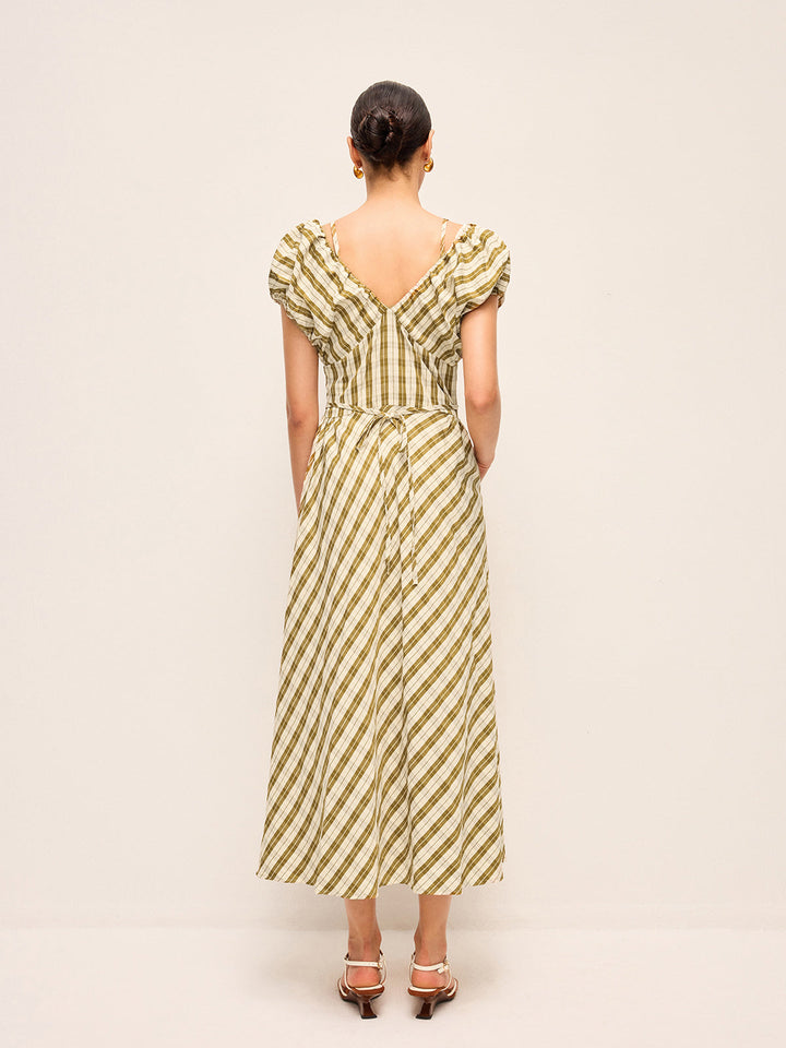 Sweetheart Neck Puff Sleeve Plaid Dress Without Belt