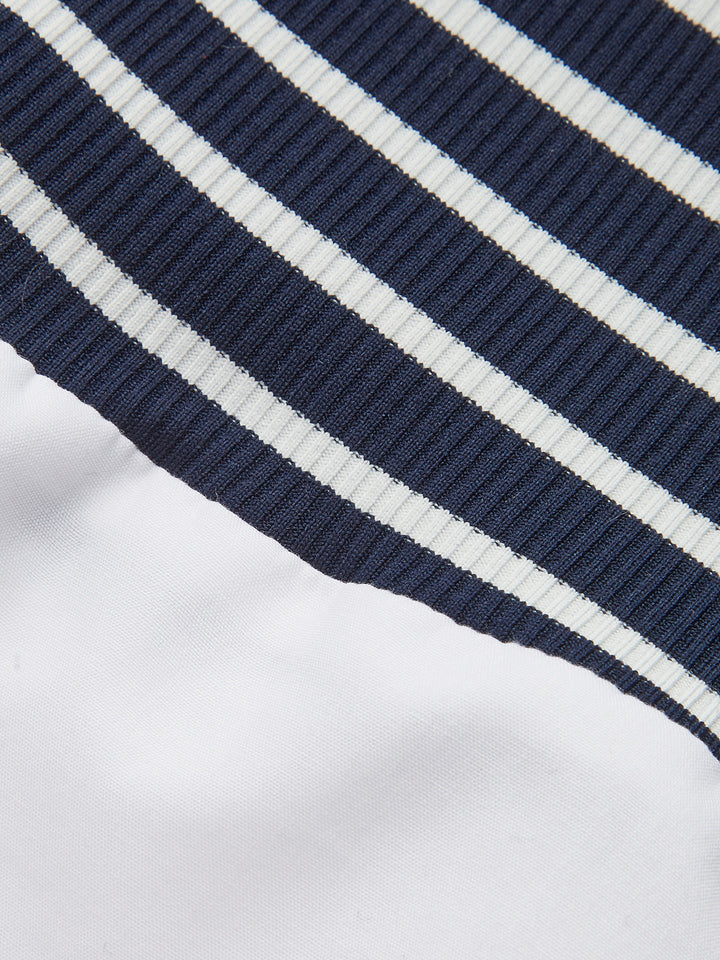 2 in 1 Striped Ribbed Paneled Long-Sleeve Blouse