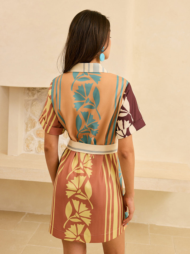 Abstract Print Belted Striped Dress