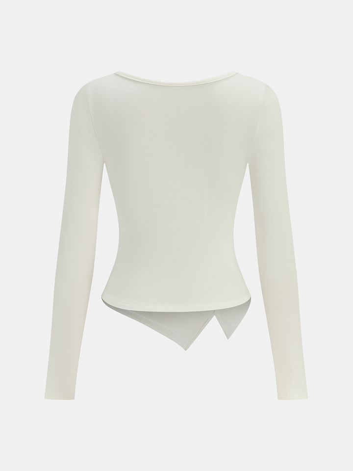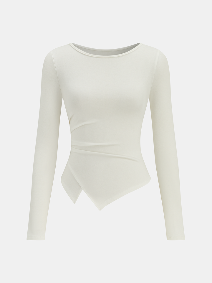 Asymmetric Hem Ruched Long-Sleeve T-Shirt