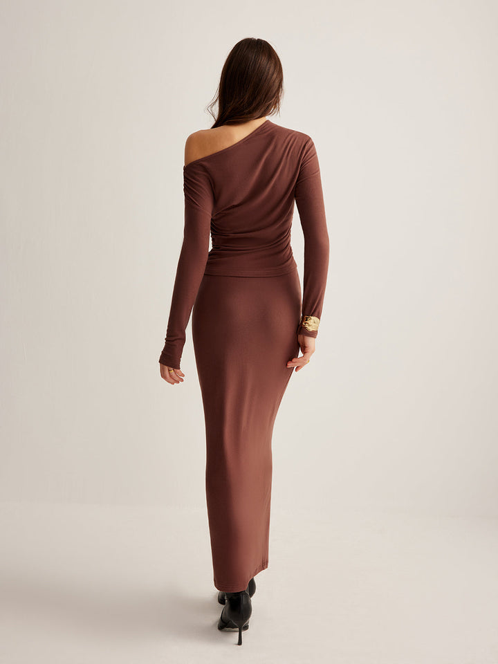 Asymmetrical Neck Slim Jersey Skirt Set