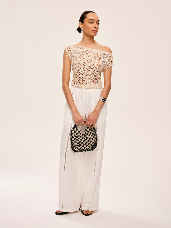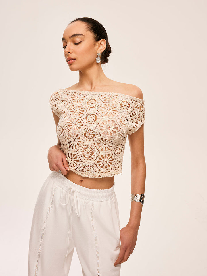Asymmetrical Off-Shoulder Semi-Sheer Crochet Top
