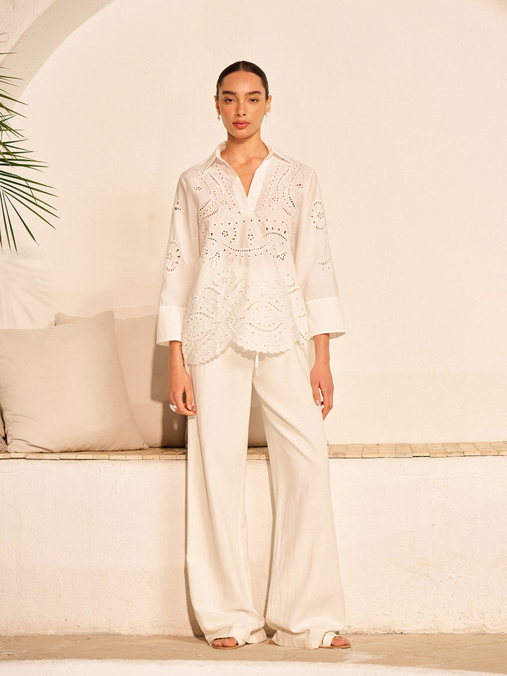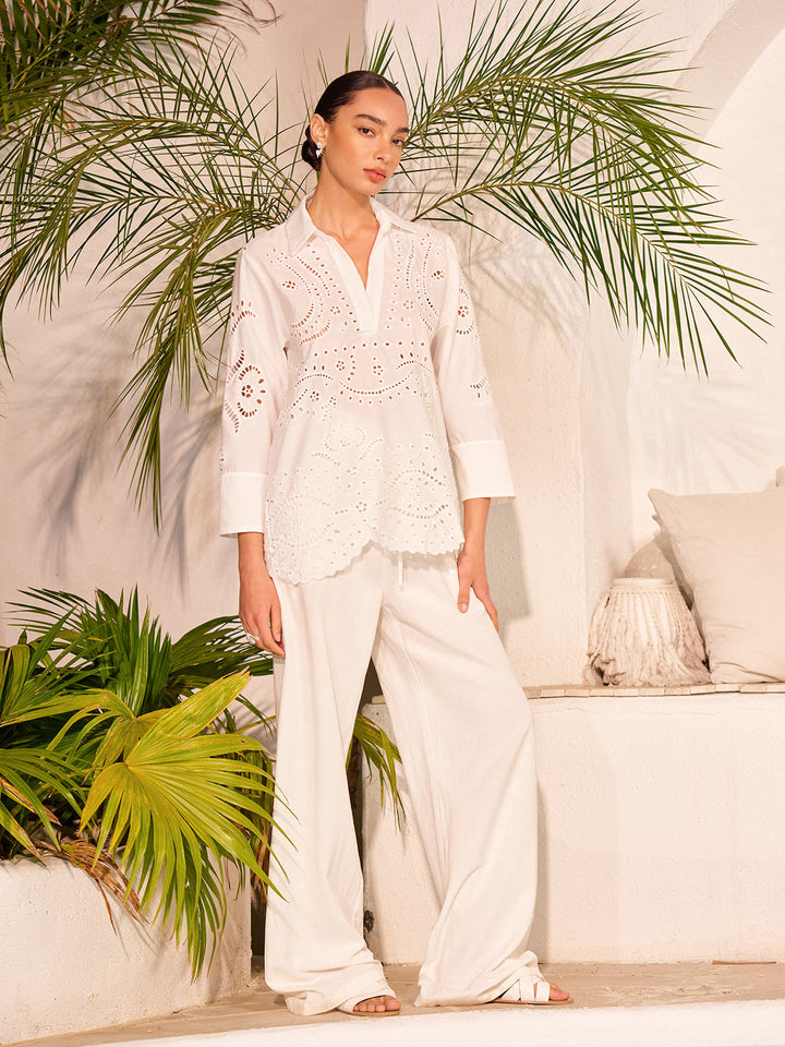 Cotton Eyelet Embroidered Semi-Sheer Top