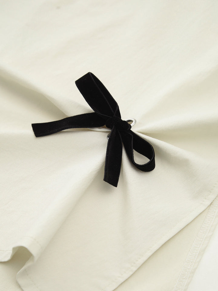 Cotton & Linen Bow Decor Split Midi Skirt