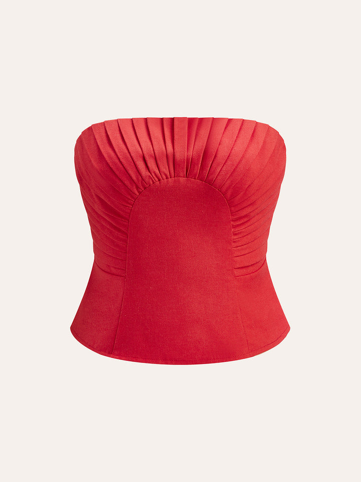 Cotton & Linen Pleated Strapless Top