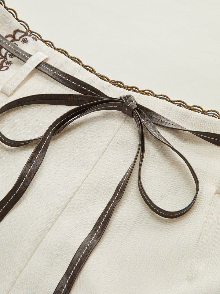 Floral Printed Suit Shorts with Lace Trims and Belt