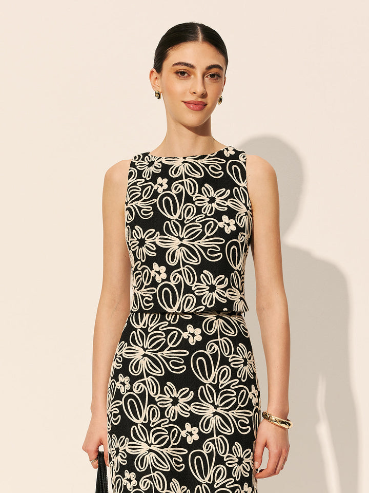 Keyhole Back Floral Embroidered Crop Top