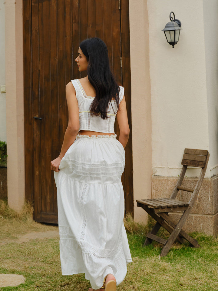 Lace Trim Tie-Front Crop Top With Skirt Set
