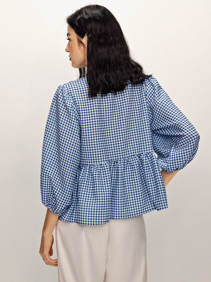 Plaid Tie Front Half Sleeve Blouse