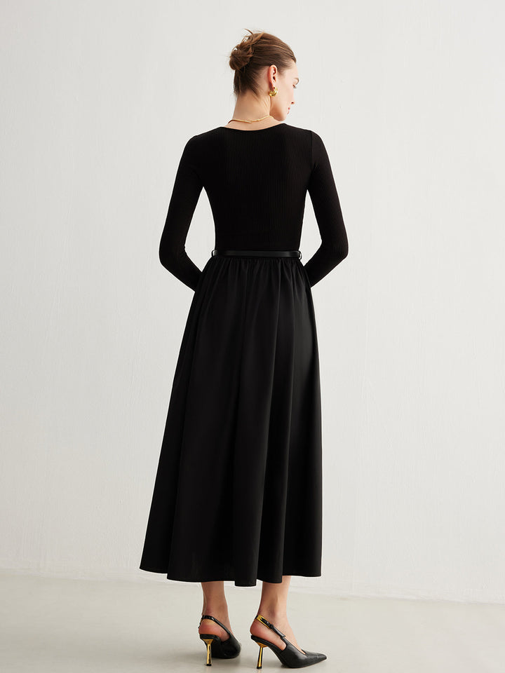 Plain Belted Pleated Panel Dress